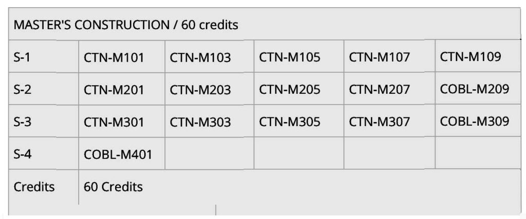 Ce programme offre un cheminement type à temps complet qui dure deux ans et comprend quatre sessions. L’étudiant qui souhaite poursuivre ses études à temps partiel doit contacter la personne-ressource de la faculté. Le programme comprend 60 crédits, dont 15 crédits pour le projet de recherche technique.Le programme propose un programme standard avec quatre sessions sur une période de deux ans. Les étudiants sont invités à contacter la personne ressource de la Faculté s’ils souhaitent poursuivre leurs études à temps partiel. Le programme comprend 60 crédits, dont 15 crédits pour le projet de recherche technique.